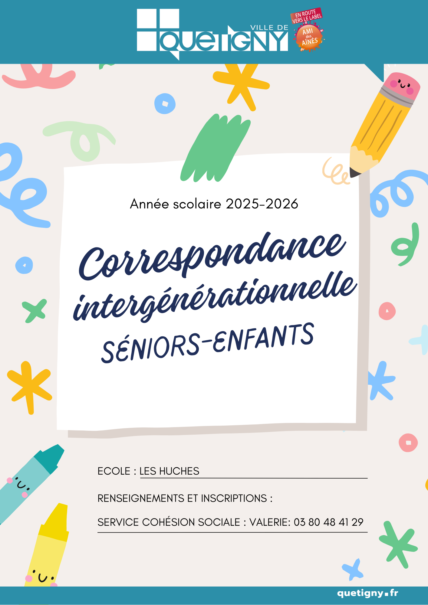 Pour la seconde année consécutive, l'école des Huches s’est associée à nous pour vous proposer des moments de partage entre petits et grands, sur l’année scolaire 2025-2026, basés sur une correspondance écrite et des temps de rencontre intergénérationnels.