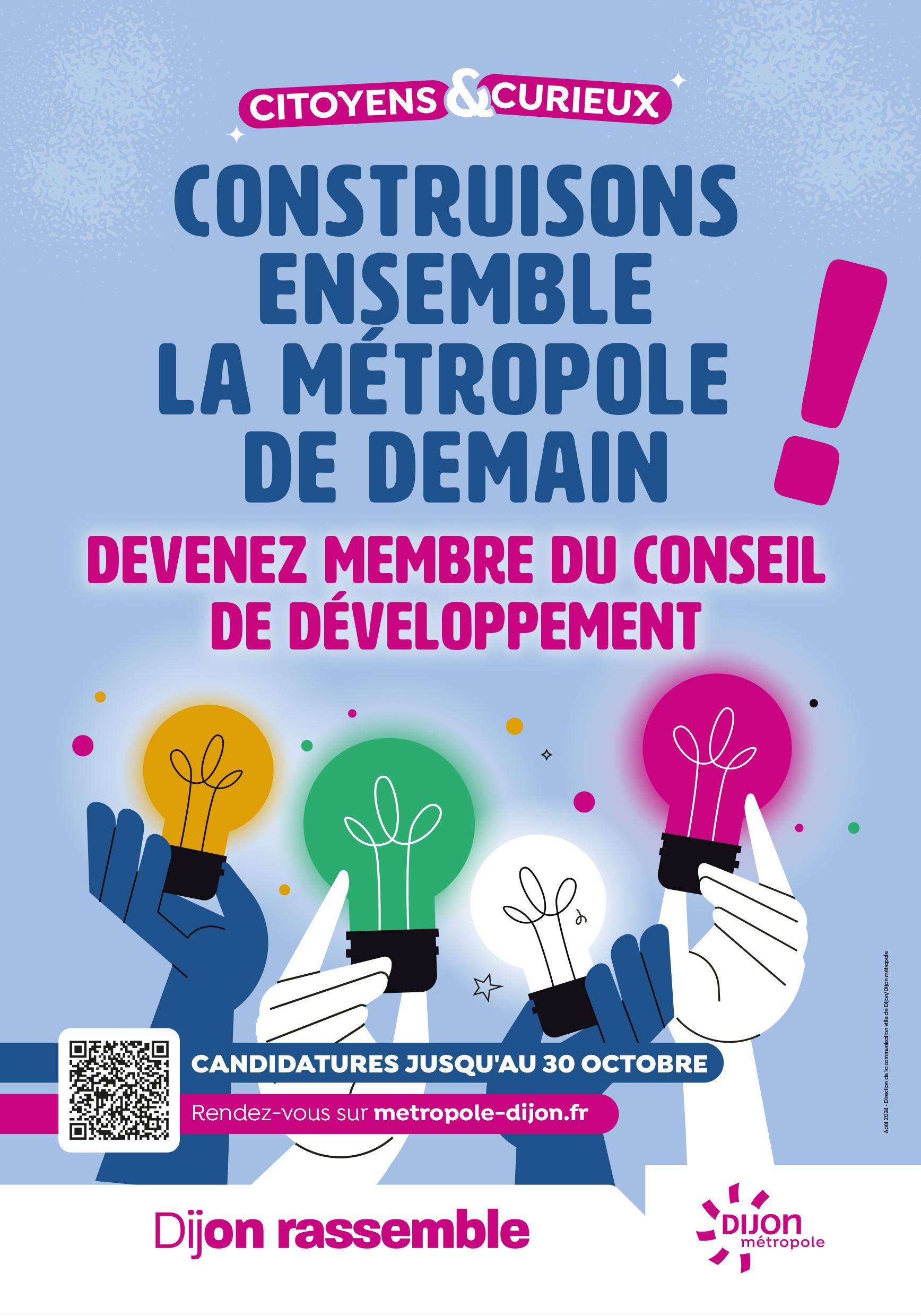 Lancée en 2022 pour un premier mandat, le conseil de développement de Dijon métropole a pour objectif d'associer plus étroitement les habitants à l'élaboration et à l'évaluation des politiques métropolitaines. Cette instance de démocratie participative est un espace de réflexion et de dialogue où lez membres émettent des avis et des propositions afin d'éclairer les élus dans leurs décisions.