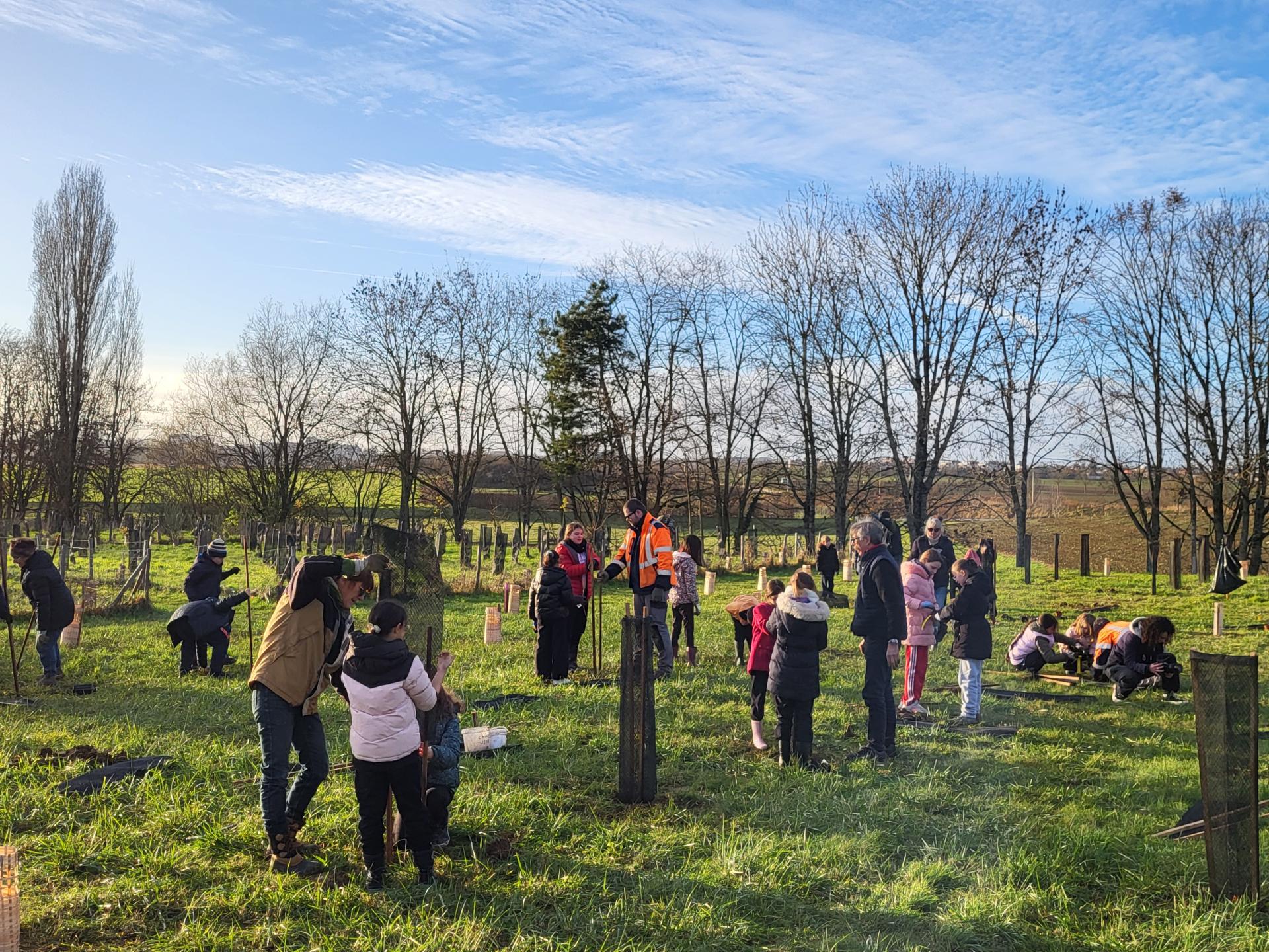 Déployé depuis 2021 dans le quartier de la Fontaine Village, ce projet de renaturation a été initié par la Ville en collaboration avec l’asso Forestiers du monde, Promut, les écoliers et enseignants de la Fontaine aux Jardins, les riverains, les asso locales. Sur 4 ans, 700 jeunes plants d’arbres et de nombreux jeunes plants d’arbustes de 45 espèces différentes ont été plantés sur plus de 1 hectare notamment par les élémentaires du groupe scolaire de la Fontaine aux Jardins.