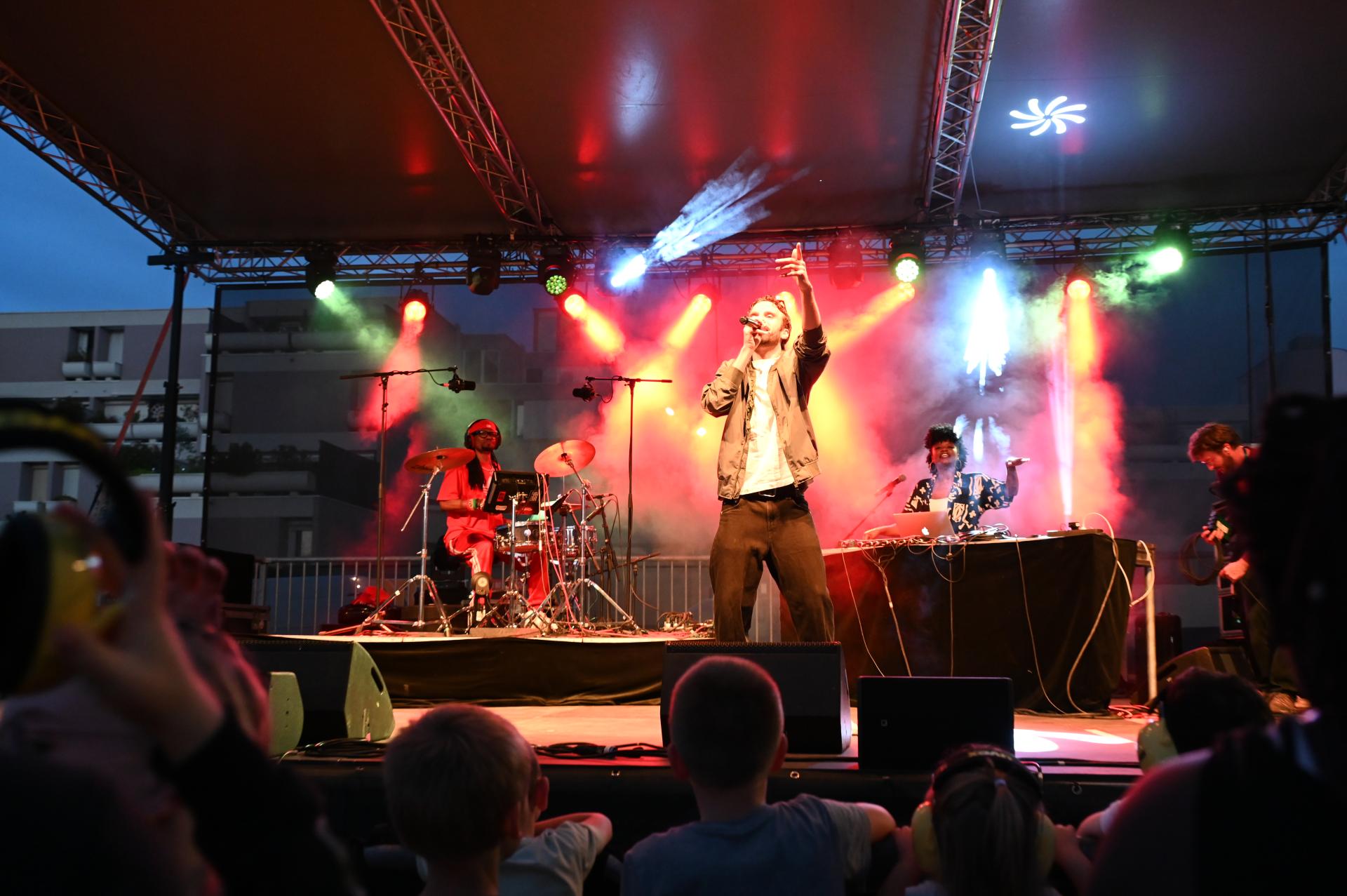Retrouvez toutes les photos de la soirée de la fête de la musique à Quetigny, du vendredi 21 juin 2024. Sur la scène de la place Centrale R-Rémond : Radio call, Lighty, Loue river et BAZIL !