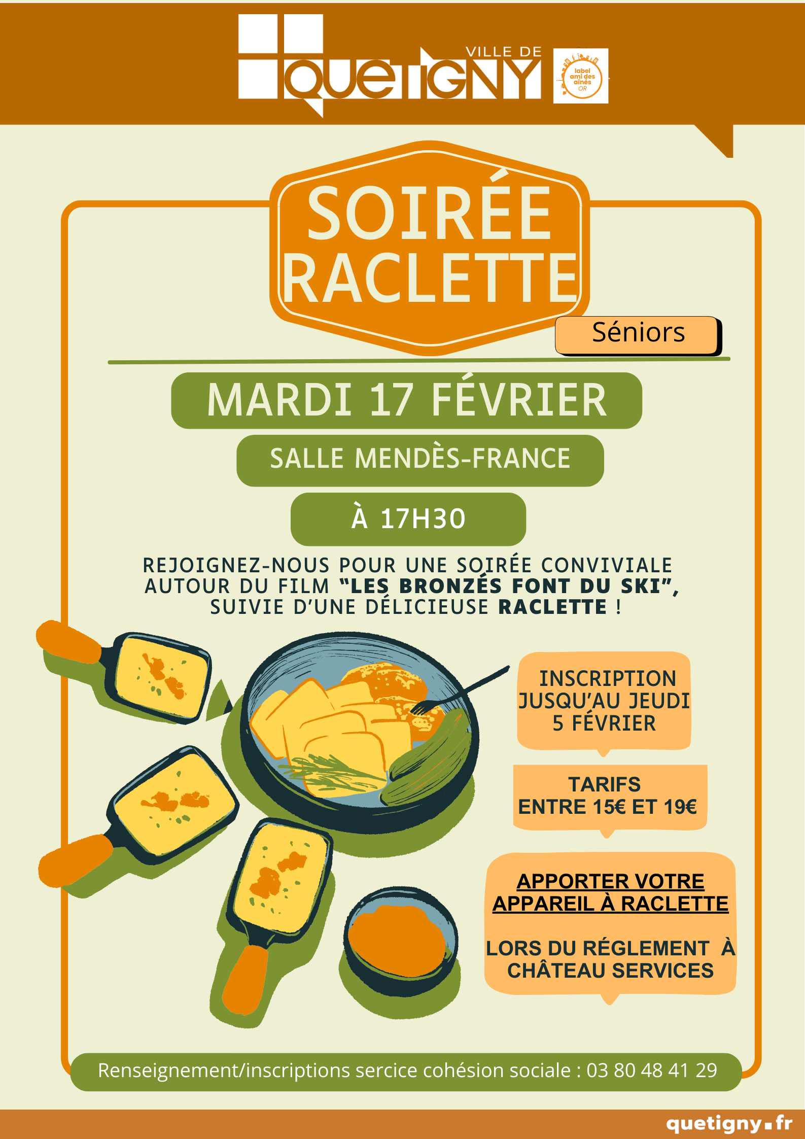 Pour changer des après-midi dansants, le service Cohésion Sociale vous propose une soirée film suivie d'une raclette.