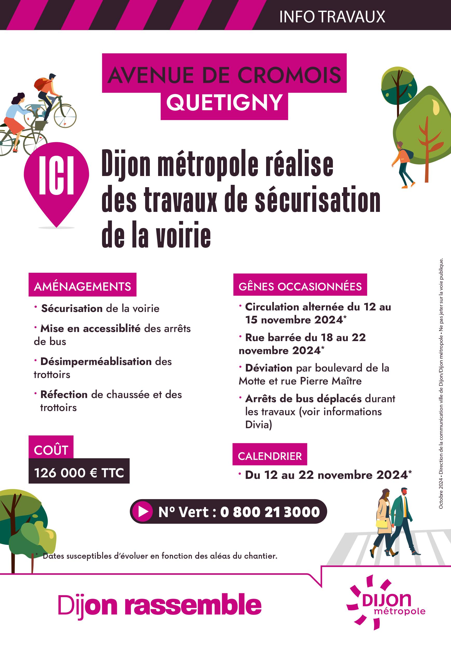 - Arrêts de bus déplacés durant les travaux (voir infos sur Divia.fr)