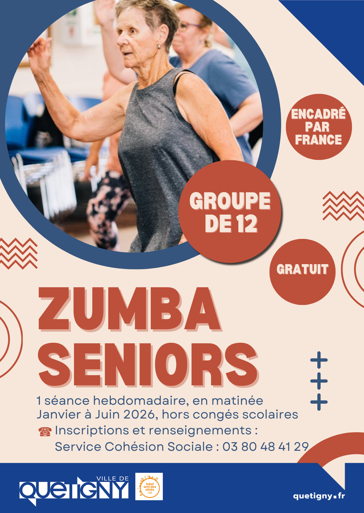 Devant l'engouement des séances de Zumba seniors, proposées par France au mois de Septembre, le service Cohésion Sociale de la Ville de Quetigny souhaiterait pérenniser cette activité.
